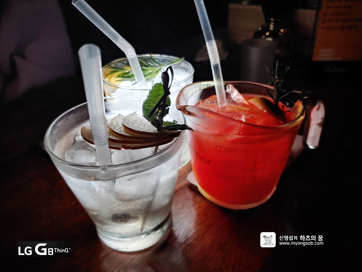 위 사진을 보면 LG G8 씽큐 카메라의 성능을 짐작할 수 있다. 특히 어두운 실내 사진 중 컵에 물방울 맺히는 것을 정확하게 표현한 촬영한 사진을 볼 수있다. 저조도 촬영 성능은 확실히 좋아졌다.