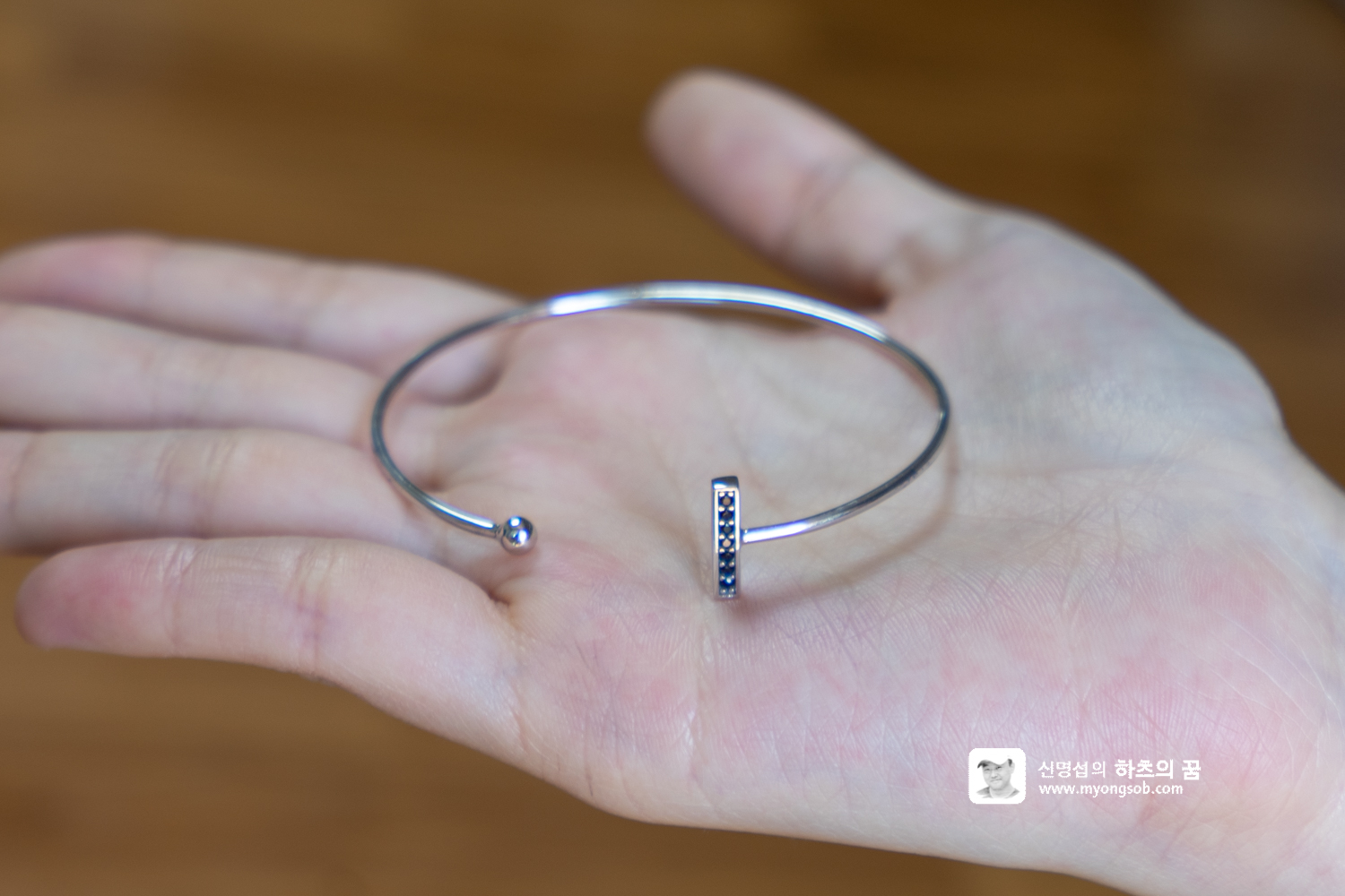 뱅글(팔찌)는 EBBA BLACK BANGLE(화이트 골드) 를 선택했다. 뱅글은 얇아서 크기 조절이 수월하다. 미니멀리즘 디자인으로 반지와 맞춤으로 주문했다. 가는 라인이 우아하면서 간편해서 언제나 착용하기 편리한 아이템이다.