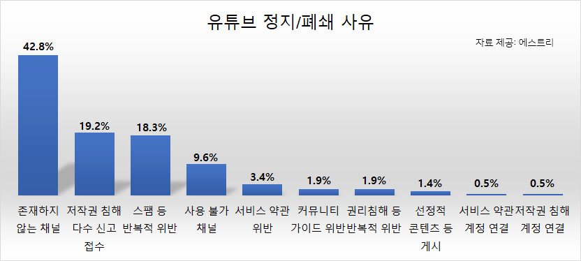 <정지/폐쇄된 유튜버 채널 사유, 에스트리 제공>