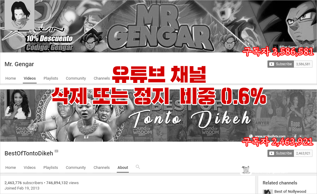 <운영 정지된 구독자 50만 이상 유튜브 채널 >