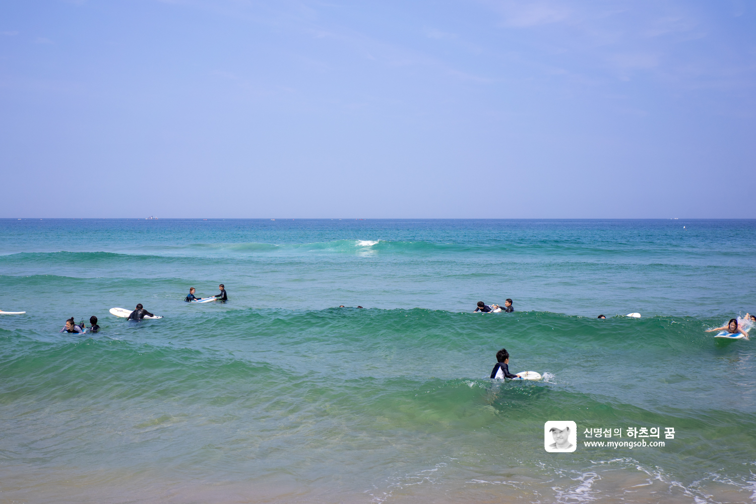 장마가 막 시작한 무렵이었지만 날씨가 매우 좋았고 바람도 살랑살랑 적당히 불어 주었다. 파도가 높으면 우리 같은 초보에게 서핑하기에 쉽지 않다.