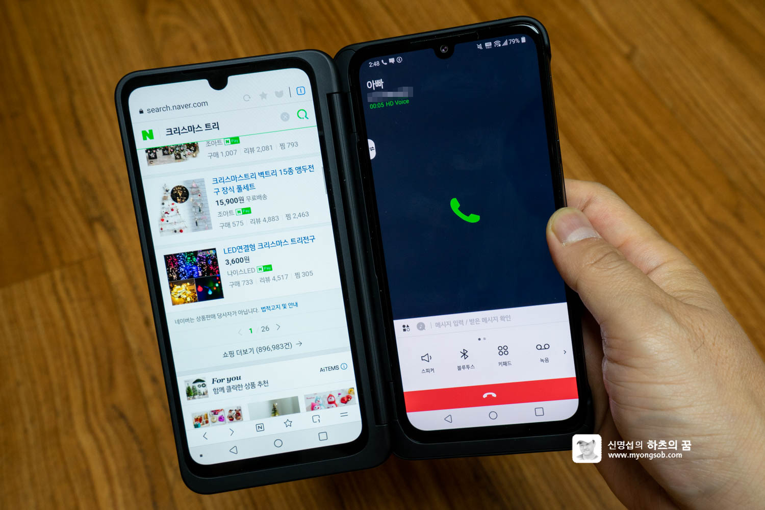 듀얼 스크린은 사용하면서 더 많은 활용 팁이 나오고 있다. 전화통화 도중 작은아이가 사고 싶은 것이 있다고 하여 다른 스크린에 '네이버 웨일 브라우저'를 띄우고 쇼핑 검색을 한다. 한 화면에 브라우저를 띄워도 되겠지만 전화 앱이 오버랩 되어 나타나서 화면 터치 중 실수로 전화를 끊게 되는 경우가 있는데 듀얼 스크린을 활용하면 그런 염려가 없다.