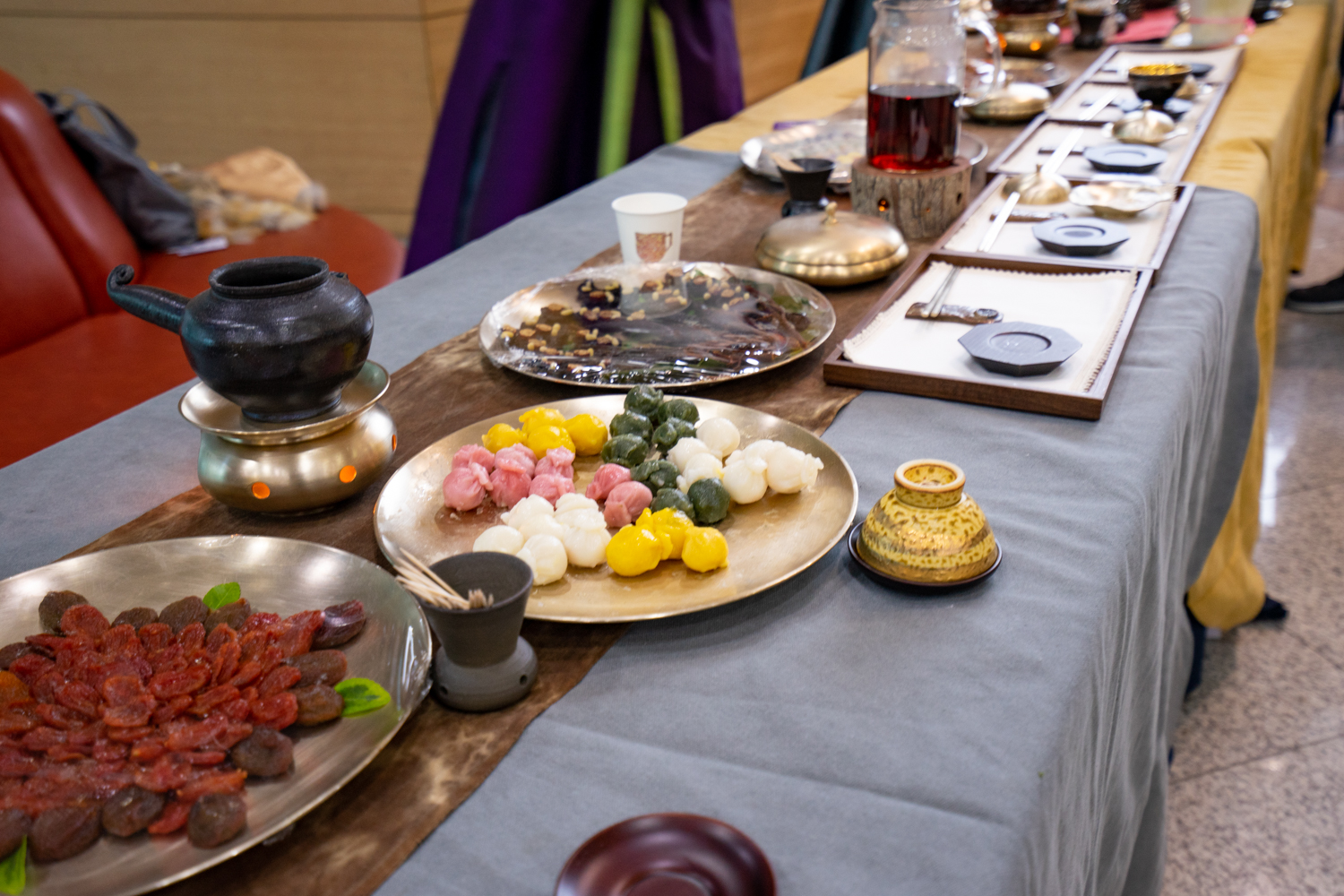 행사작 밖에서는 부여시에서 한국음식을 준비해오셔서 상차림을 하고 있었다. 강연 중간에 가벼운 식사를 할 수 있게하고, 머드와 함께 한식을 알리기 위해서 준비한 것이라 한다.