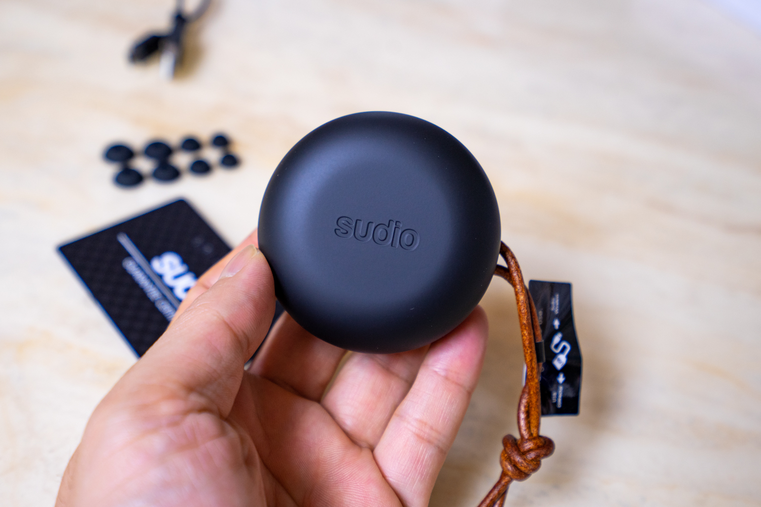 수디오 제품은 언제나 심플함과 미니멀한 디자인이 먼저 눈에 들어온다. 또한 자연 친화적인 요소를 가미하여 좀 더 편안한 느낌을 준다. 이번 제품의 충전 케이스가 딱 그런 느낌을 잘 살려서 디자인 되었다. 동그랗고 깔끔한 원형에 고리는 빈티지한 느낌으로 포인트를 살렸다.