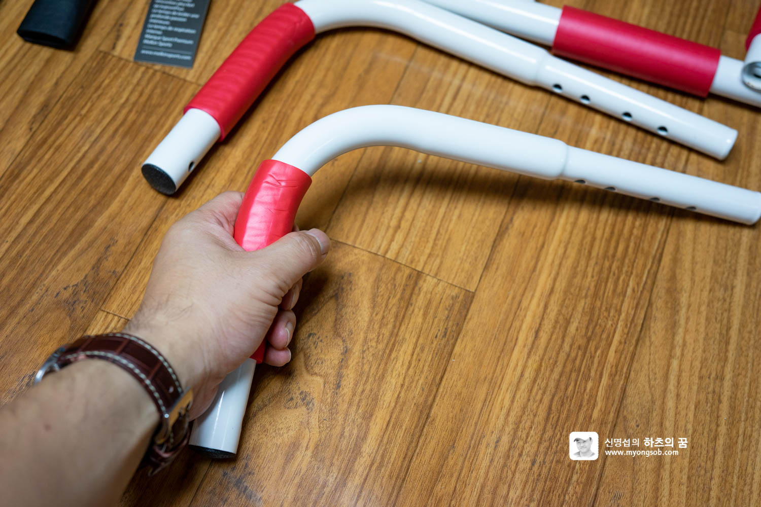 철봉을 조립할 때 문들 상단에 걸게 되는 부분일 끼울 때 벽면에 대는 부품의 앞뒤를 확인할 필요가 있다. 보호 고무가 붙어 있는 부분이 벽에 걸었을 때 벽에 닿는 부분이다.