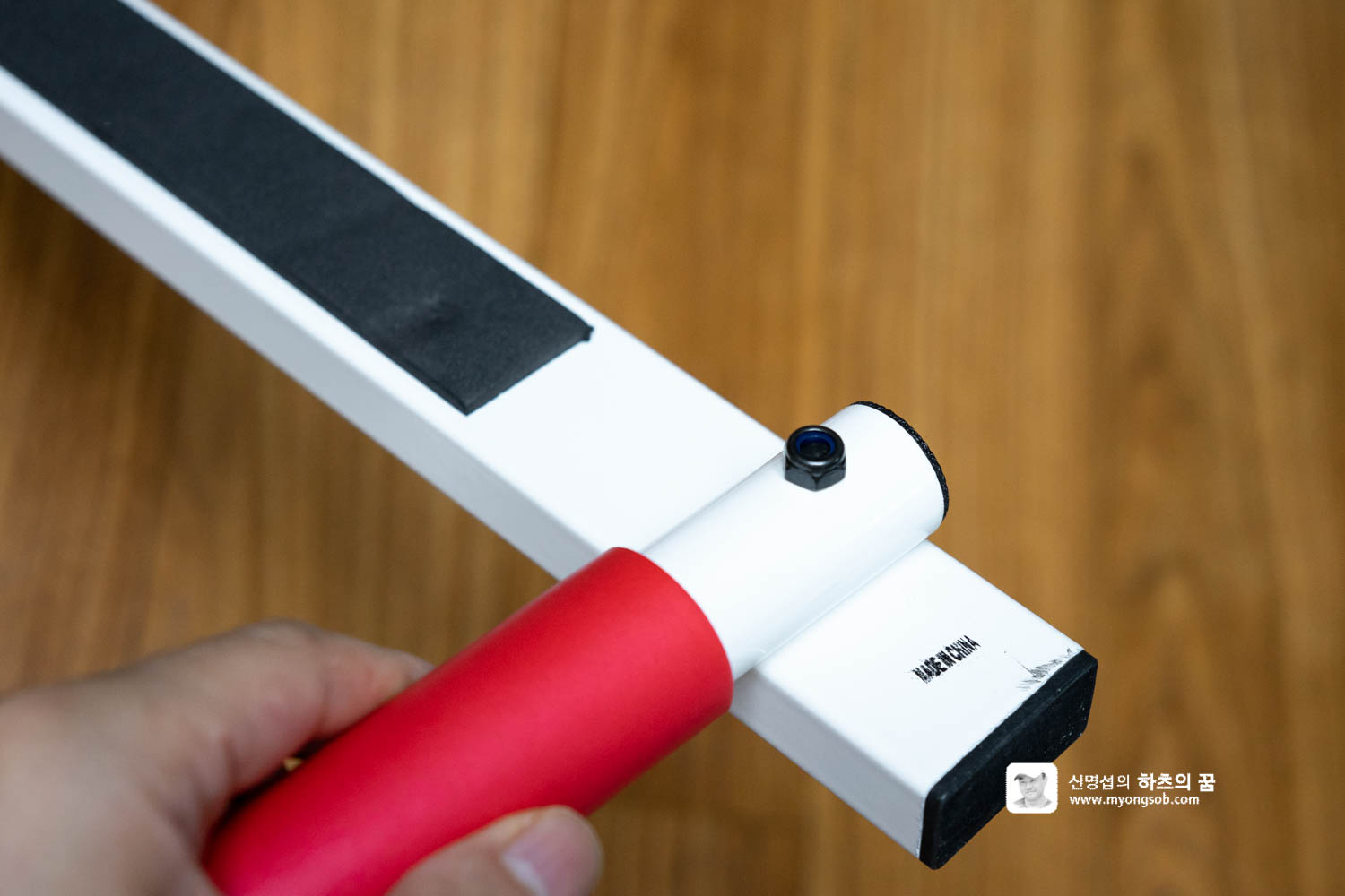 약 20여분 동안 조립해서 철봉을 완성했다. 위 사진에서 보면 벽에 걸려 있는 부분이 잘못 설치되어 있다. 검은색 고무가 벽에 닿게 조립했어야 하는데 반대로 한 것이다. 이렇게 조립해도 거치에 문제는 없다.