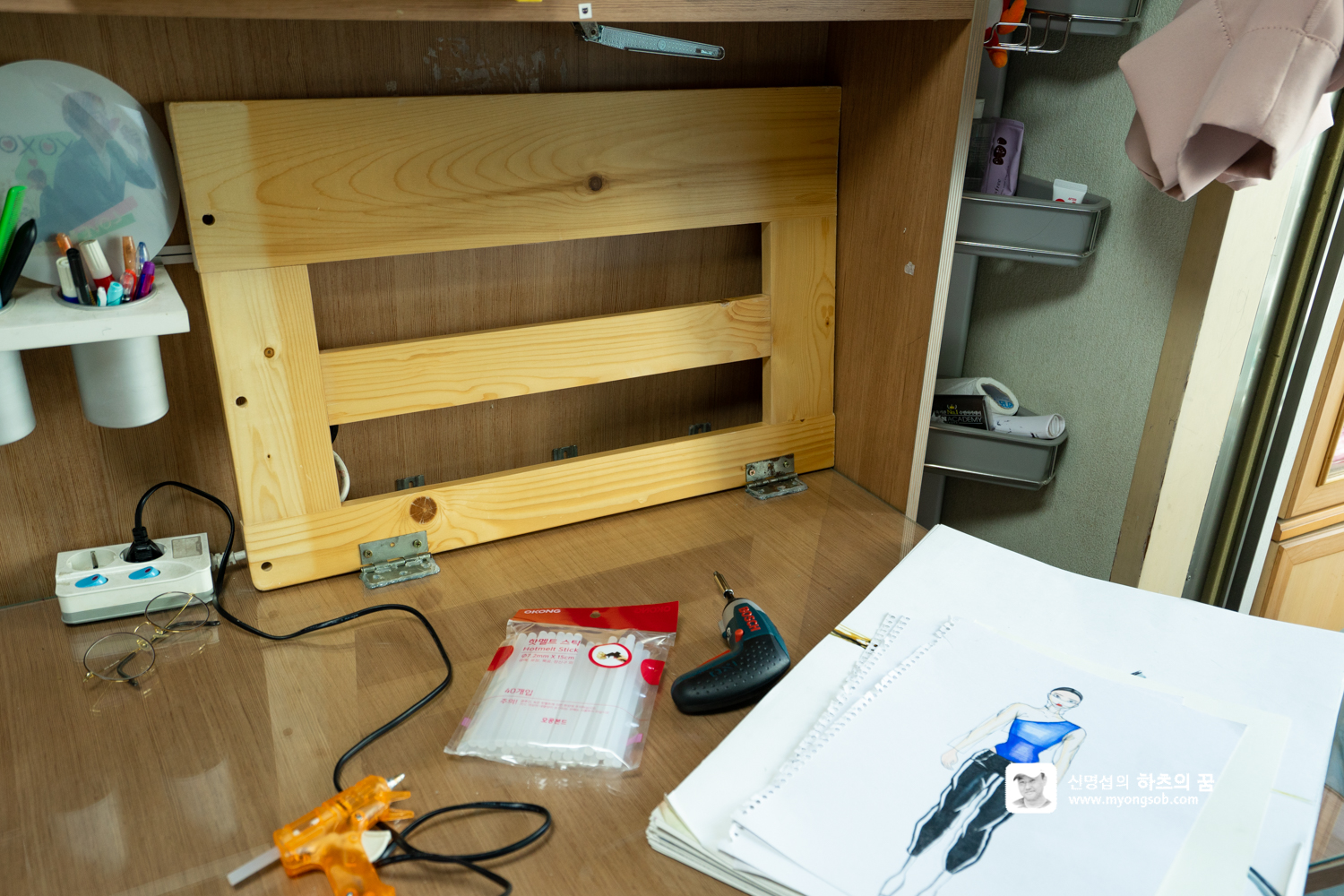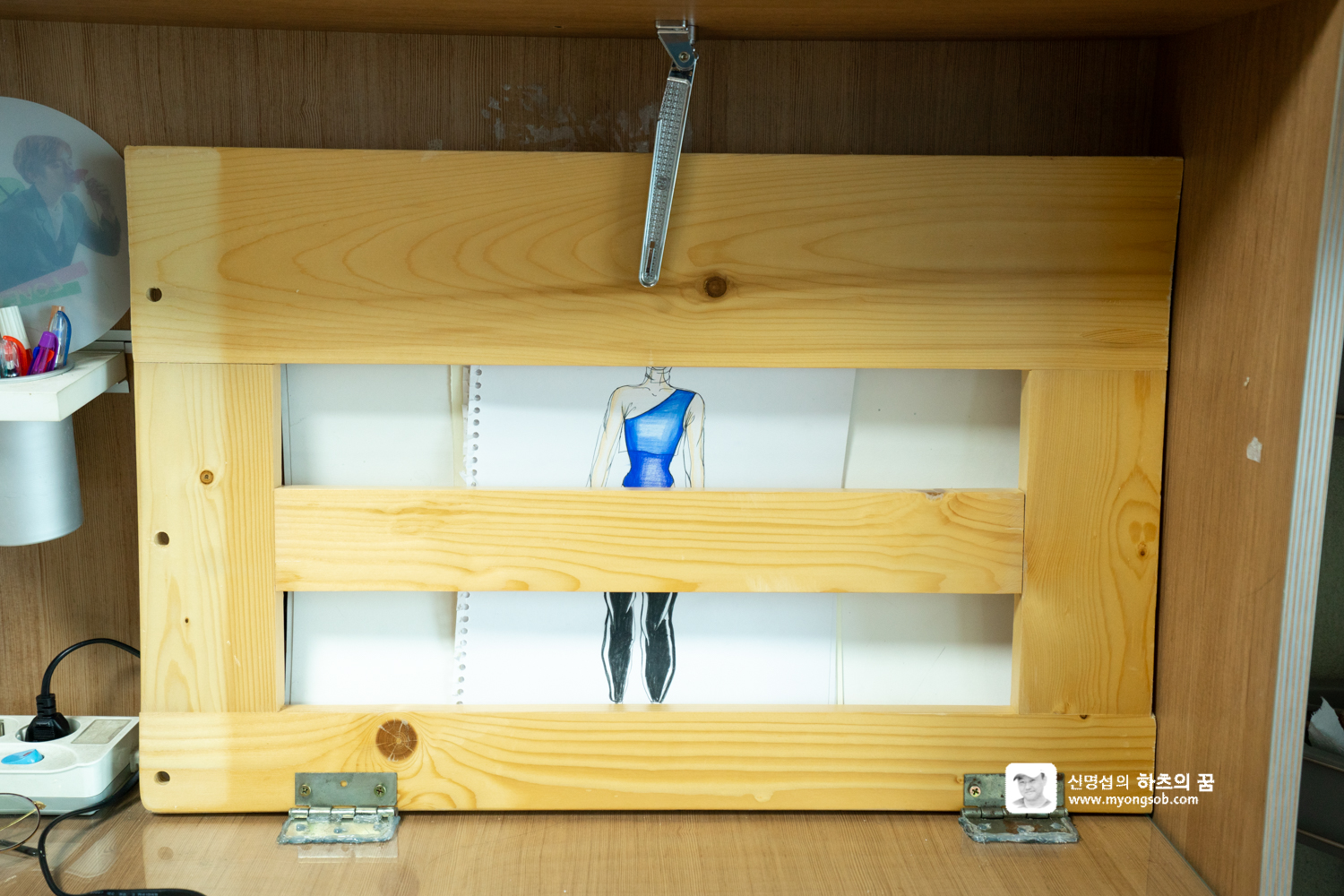 문득 아이의 책상 위를 바라보다 앞쪽 공간이 꽤 넓다는 것을 알게 되었다. 책상 위에 펼쳐 놓을 것이 많지 않고 폭이 넓으니 앞쪽 공간을 활용하면 그림을 보관할 수 있는 공간이 되겠다는 생각이었다.
