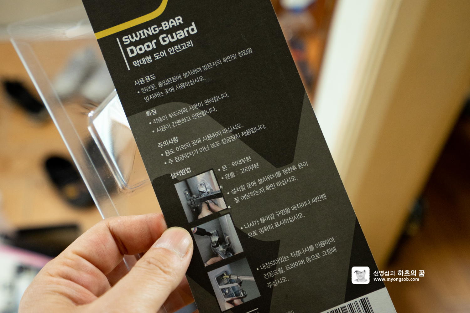 나무판을 앞에 대고 열리지 않게 고정할 수 있는 '상단 고정 쇠'가 고민이었다. 만들자니 허접할 것 같고.. 경첩 등을 구매하려고 대형마트에 갔다가 문을 여닫을 때 보안에 도움을 주는 '막대형 도어 안전고리'가 눈에 들어왔다.