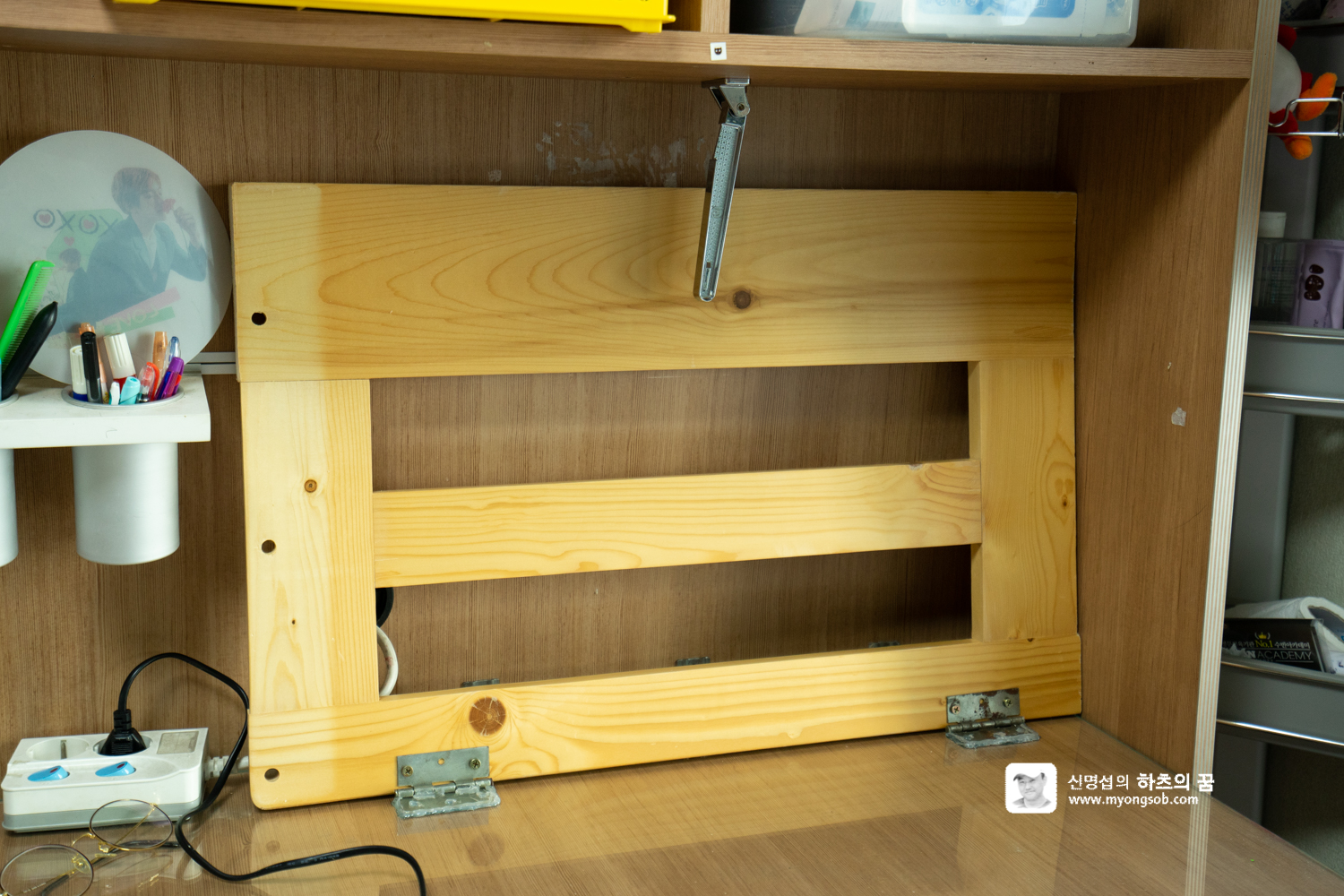 - 경첩 : 2개, 나무판을 책상에 연결하여 열고 닫을 수 있도록.