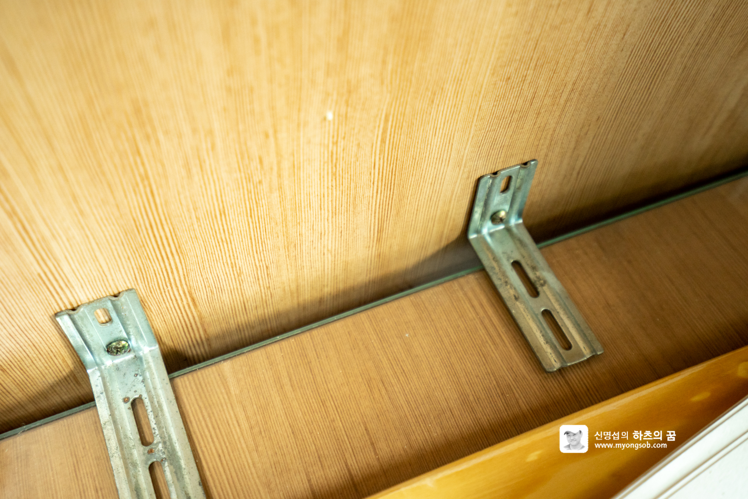 한쪽에 고정하고 180도 앞뒤로 열리는 것을 방향을 바꿔서 상단에 고정하고 좌우로 열리게 하면, 나무판을 올렸을 때 고정할 수 있을 것이라 생각한 것이다.