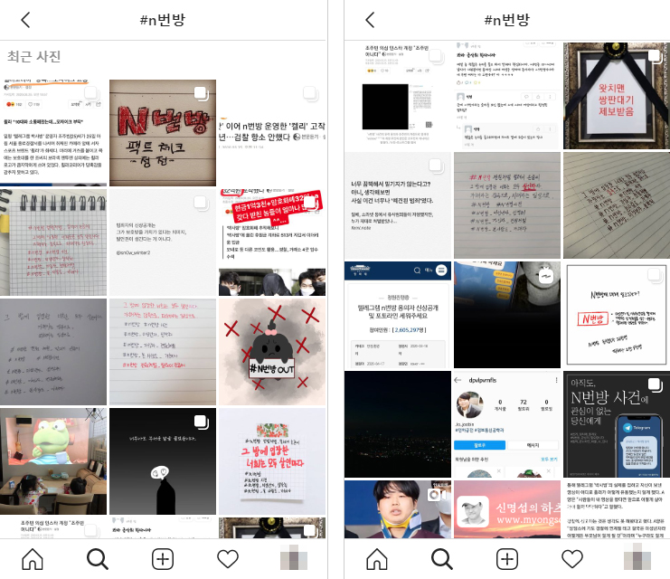 다행이도 인스타그램을 통해서는 불법적인 콘텐츠가 보이지 않았다.