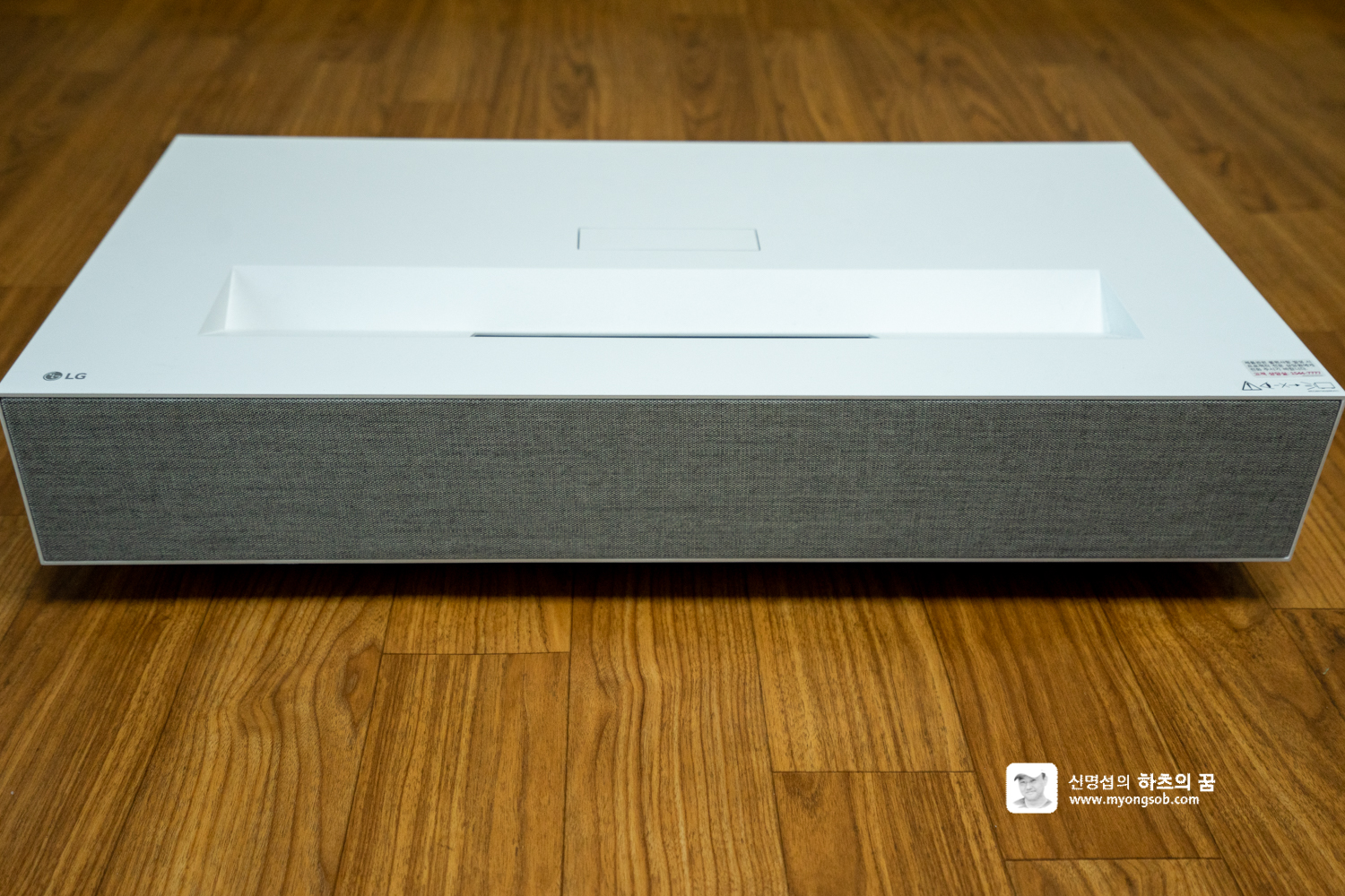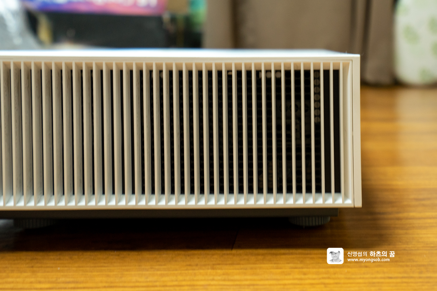 LG 시네빔은 좌우 측면 전체를 조용한 통풍구가 있어서 효과적으로 열을 배출하고, 기기가 벽면에 딱 붙어 있다보니 영상을 즐기는 뒷편까지 열기가 전혀 느끼지지 않는다.