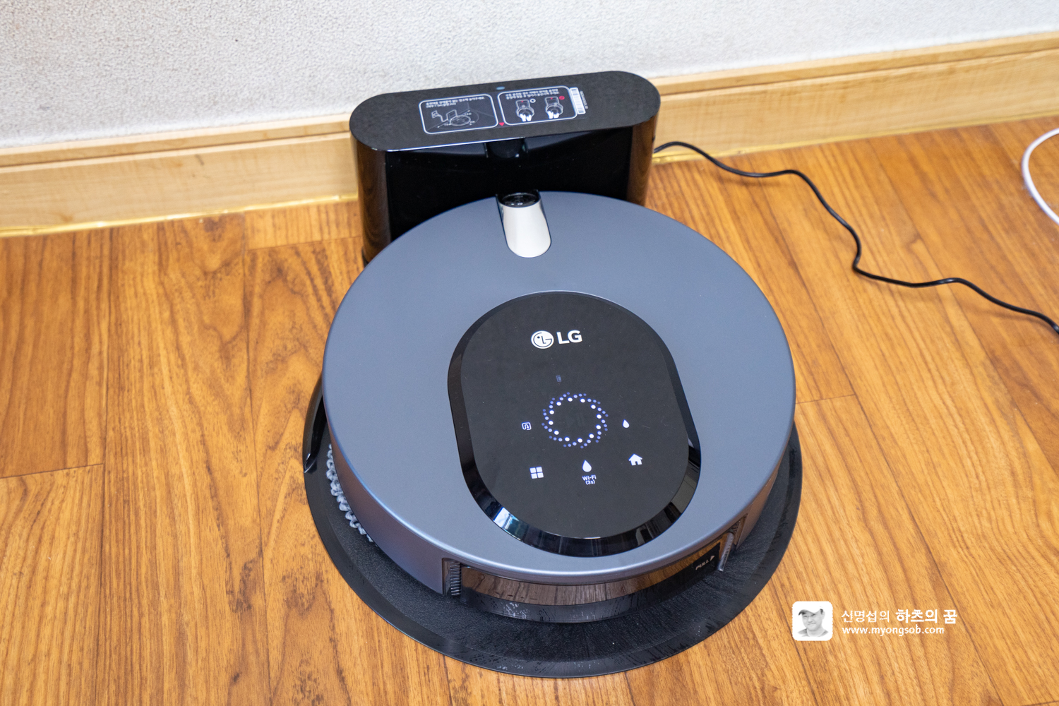 LG M9 로봇청소기로 청소를 하기 전에 물걸레를 먼저 적셔 주는 게 좋다. 물 공급을 하면 되겠거니 생각할 수도 있지만, 처음에는 마른 걸레로 청소를 시작하게 될 수도 있다.