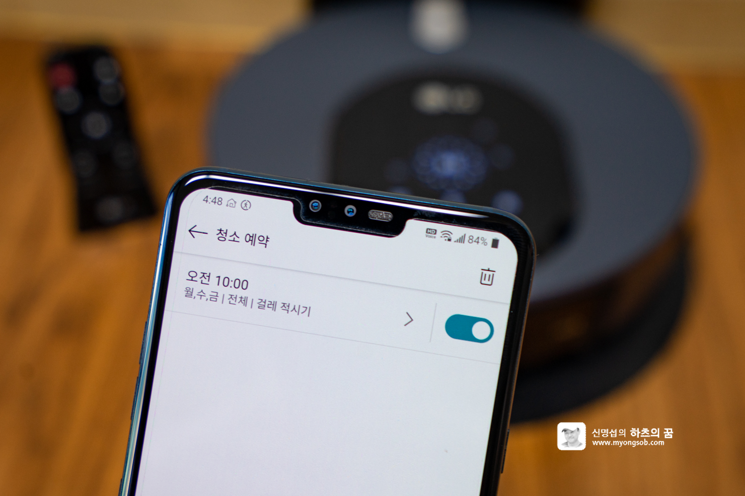 미리 청소를 예약해두면 주기적으로 청소를 할 수 있다. 시간별로 예약을 여러 건 지정해 둘 수도 있다. 시작할 때 '걸레 적시기' 기능을 켜 두면 걸레가 마른 상태로도 청소를 시작할 수 있다.