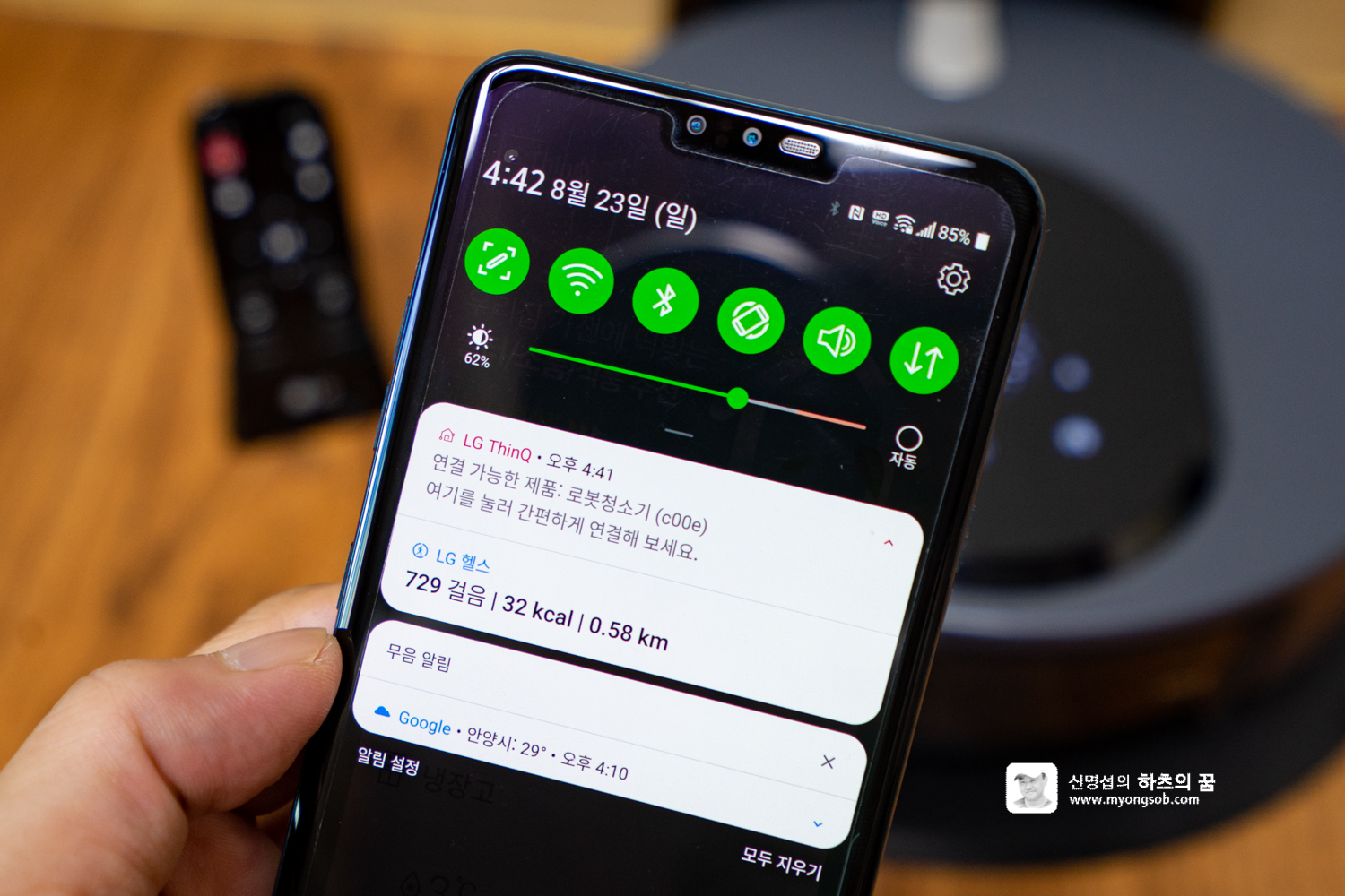귀차니즘으로 자주 하지 않던 물걸레 청소를 자주 하게 되었고, 퇴근하고 돌아온 거실의 깔끔함에 흡족해 한다. 간간이 밖에서 집안의 모습을 지켜 보기도 한다.