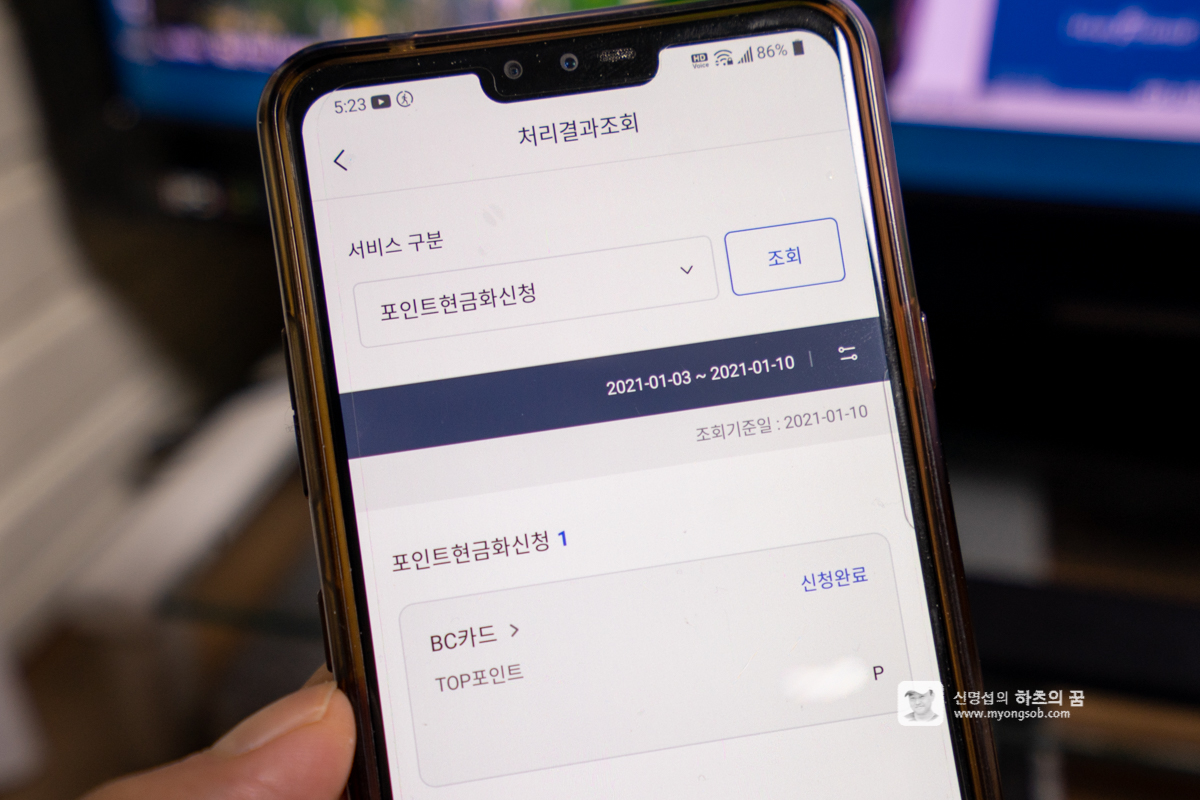 조금 전 신청한 내역이 나타난다. 현금화 신청은 각 카드사 별로 1일 1회 만 신청이 가능하다. 카드 포인트가 빈번하게 쌓이는 일이 없으니 사용에는 문제가 없겠다.