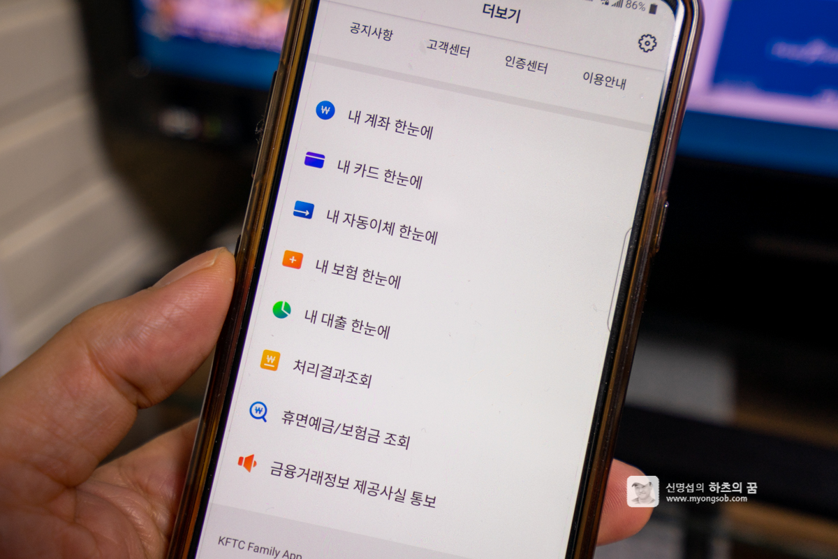신청한 내용도 확인이 가능하다. 어카운드인포 앱의 우측 하단의 [더보기]를 누르면 위와 같이 다양한 메뉴가 나타난다. 여기서 [처리결과조회]를 터치한다.