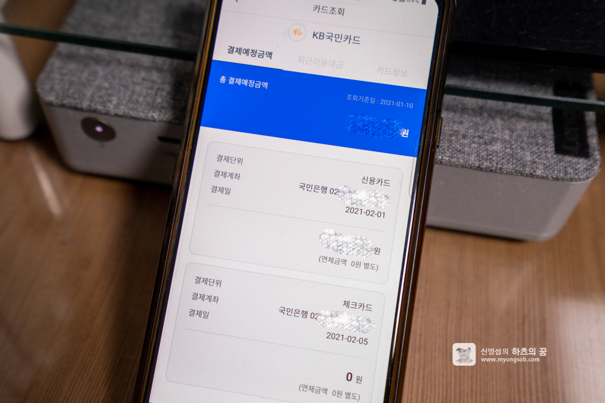 특정 카드사를 터치하면 해당 카드사에서 발급한 여러개의 카드와 다음달 청구 금액을 확인할 수 있다.