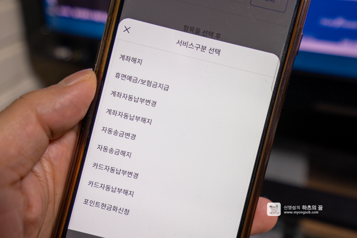여러가지 신청 내역 중 '포인트현금화신청'을 터치한다.