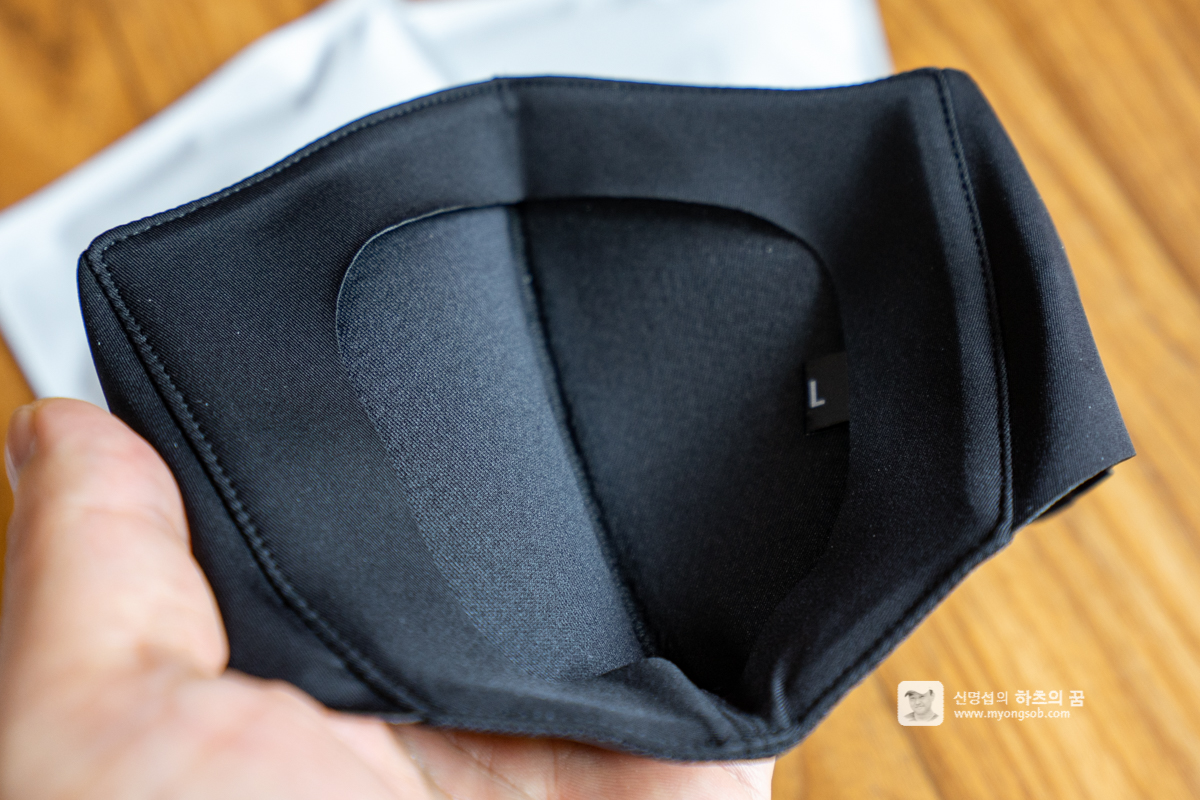 제품은 마스크와 2개의 필터가 들어 있다. 마스크는 매시 패브릭으로 제작되어 매우 부드럽고 가볍다. 귀에 거는 이어 루프 부분이 매우 편하다. 이어 루프 자국이 얼굴에 남지도 않는다.