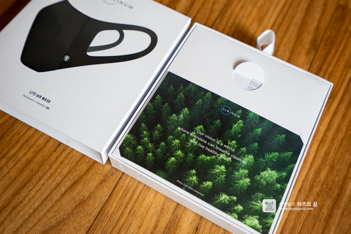 케이스를 열면 위와 같은 한장의 카드가 있다. 여기에 "우리의 비전은 모두가 깨끗한 공기를 마시고 건강한 삶을 살 수있는 세상입니다."라는 문구가 눈에 띈다. 이런 비전을 가지고 제품을 만든다는 것이 멋지다.