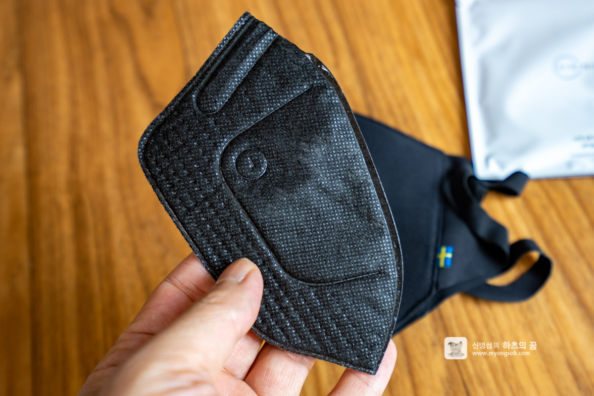 외부 공기 차단을 위해서는 필터를 끼워서 사용하는 것이 맞지만 그냥 마스크 만 써도 상관은 없다. 마스크는 스웨덴 특허의 항균 기술의 폴리진 가공 원단을 사용하여 위생적이다.