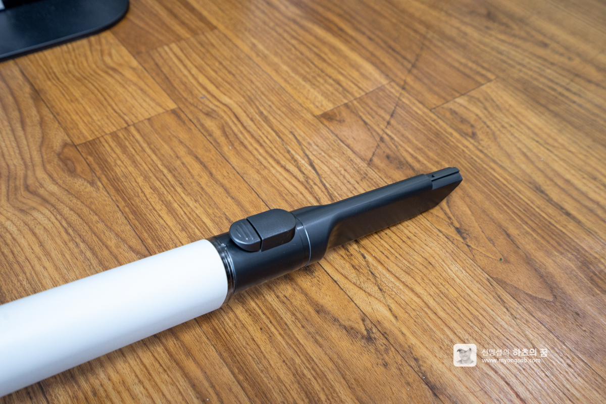 기존 무선청소기 A9 모델 보다 읍입구가 11mm 낮아져서 소파 등 낮은 공간도 청소가 가능해졌다. 함께 제공하는 틈새 흡입구를 사용하면 손이 들어가지 않는 공간까지 청소를 할 수 있다.