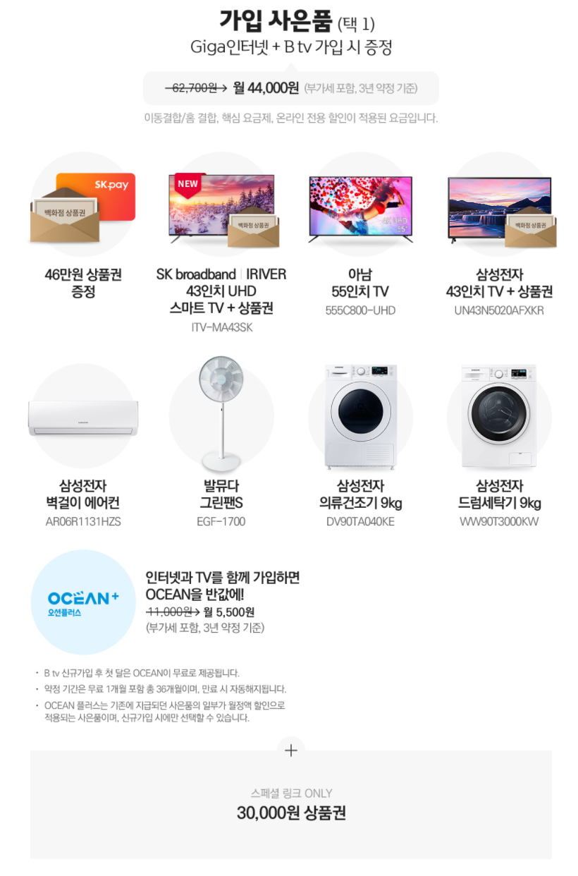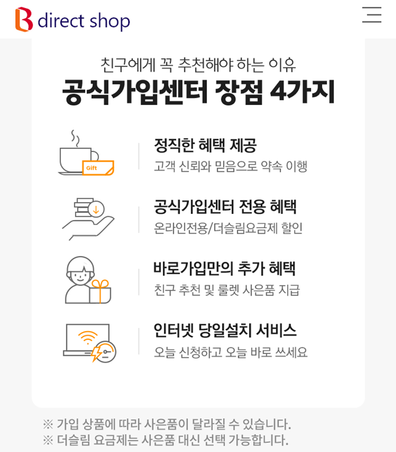 SK브로드밴드 공식 가입센터 B다이렉트샵, 공식 사이트라 가능한 할인과 사은품