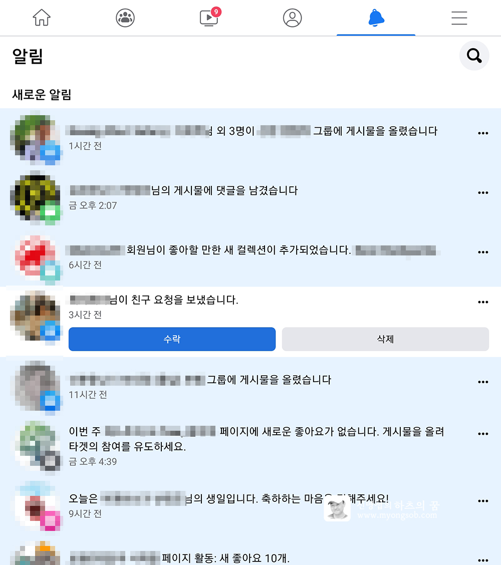 페이스북은 거의(?) 전체 화면을 사용해서 사진의 경우 엄청 크게 나타나서 사용이 편리하다. 위와 같이 광고를 하는 경우 노출에 상당한 도움이 되겠다. 하지만, 알림 화면은 그대로 넓게 만 보여주어 횡한 느낌을 지을 수 없다. 알림 목록 우측에 기능을 표시해도 넓이가 충분할 듯 보인다.