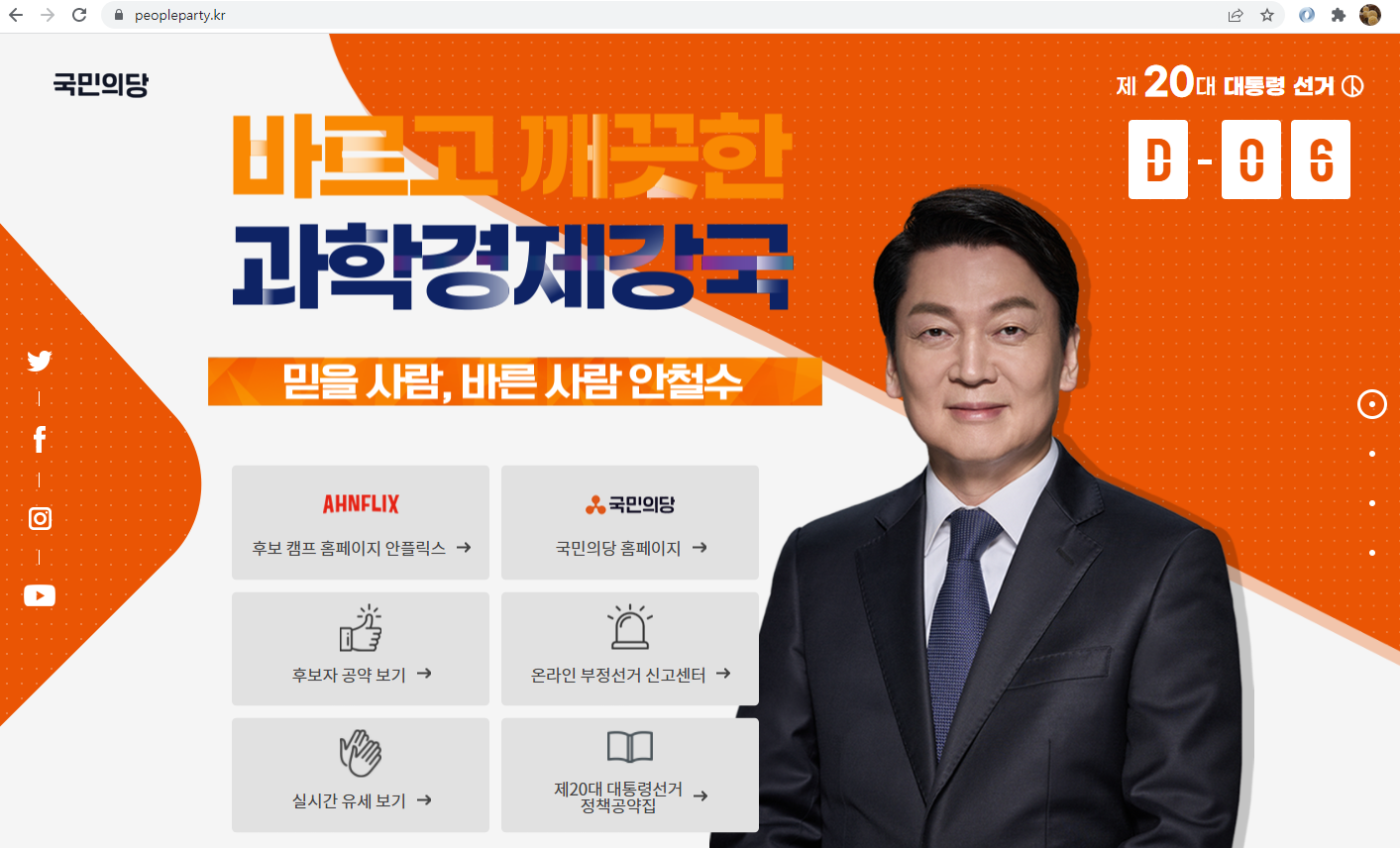 오전까지 국민의당 홈페이지(바로가기)에는 여전히 대선후보 안철수의 모습과 공략 등이 올라와 있었다. 현수막도 홈페이지도 정리하지 못한 채 무엇이 급했는지, 무슨 이유가 있었는지 너무도 급하게 단일화를 끝냈다.