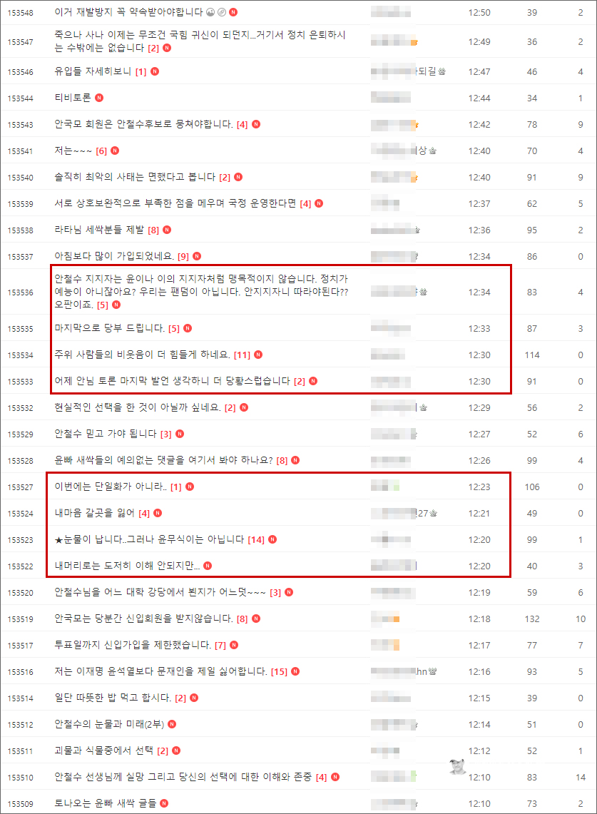 국민의당 자유게시판에는 이번 결정에 실망과 성토하는 불만의 목소리가 가득하다. 그 중 유세 중 돌아가신 분들에 대한 심정, 탈당 방법 등 심각한 목소리도 흔치 않게 보인다.