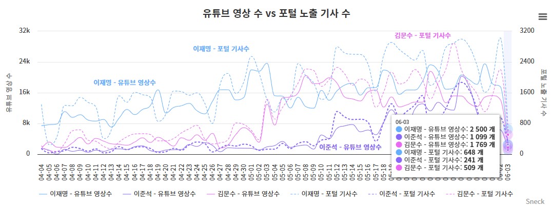 그동안 약 3개월간 스넥(sneck.ai)에서는 대선 후보 및 주요 인물 및 이슈에 대한 무료 분석 서비스인 "2025년 대통령선거 분석 - 스페셜 리포트"를 제공하였다.