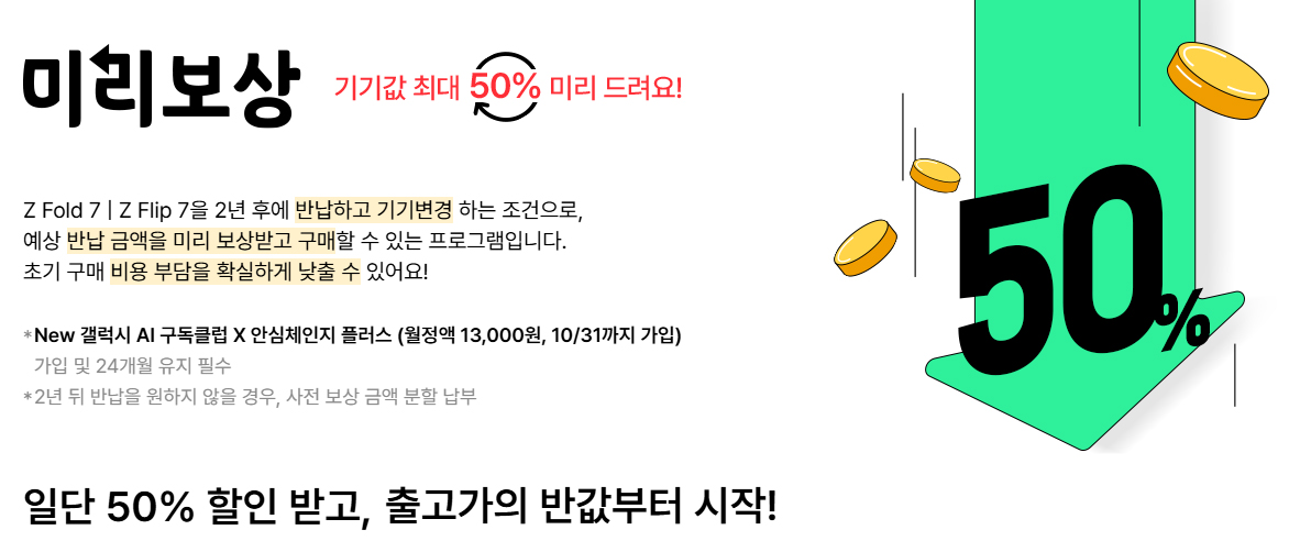 기기 출고가의 최대 50%를 미리 할인받고 구매할 수 있는 프로그램이다.