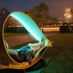 태양광 전원이 있는 야외 벤치, 시민 공원에 설치하면 좋겠네. 공원에서 가족과 함께 편안한 오후를 즐기거나 대학 캠퍼스에서 친구들과 이야기 하는 것을 상상해 보라. '나무 그늘 아래에 벤치나 자리 위에 앉아서 음식을 먹고 누군가는 스마트폰을 만지작 거리는..' 뭐 그런 것을 상상할 수 있을 것이다. 미국의 MIT 건축학과 학생들은 그런 행위를 하는 것에 조금 더 의미를 부여할 수 있는 태양광 전원 벤치를 구상했다. 원문 :SOFT Rocker uses solar to top up your gadgets while you relax 태양광 전원을 이용할 수 있는 라운드 형태의 이 벤치는 'SOFT Rocker'라 한다. 윗면에는 태양의 빛을 모을 수 있는 집광판이 빼곡히 설치되어 있고, 안에는 눕거나 기대..