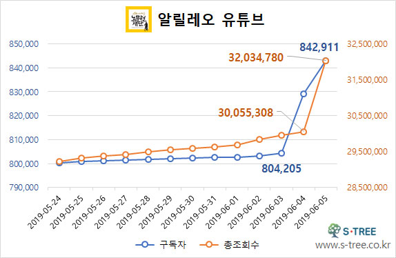 유튜브 채널 일별 모니터링을 진행하는 빅데이터 분석 에스트리(www.s-tree.co.kr)를 통해 알아본다.