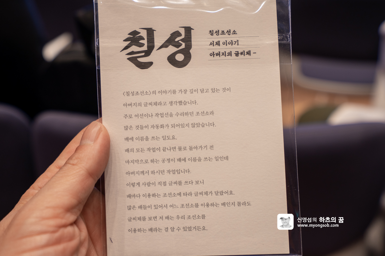 선물과 함께 '칠성 조선소'의 이야기가 들어 있다. 배를 수리하던 조선소에서 배에 이름을 쓰기 때문에 배의 폰트를 보면 어떤 조선소를 이용하는 지 알 수 있다고 한다. 즉 폰트는 어떤 사물의 이름이자 아이덴티티를 갖는다는 것이다.