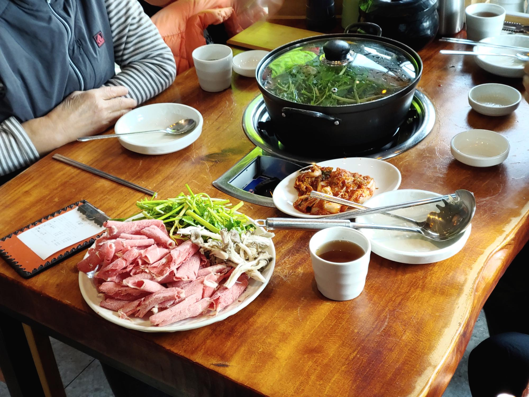 우리 일행은 본 메뉴인 버섯샤브칼국수와 만두를 주문했다. 샤브샤브 국물이 얼큰하고 개운해서 좋았고, 만두는 속이 꽉차 있어서 너~무 배부르게 식사를 했다.