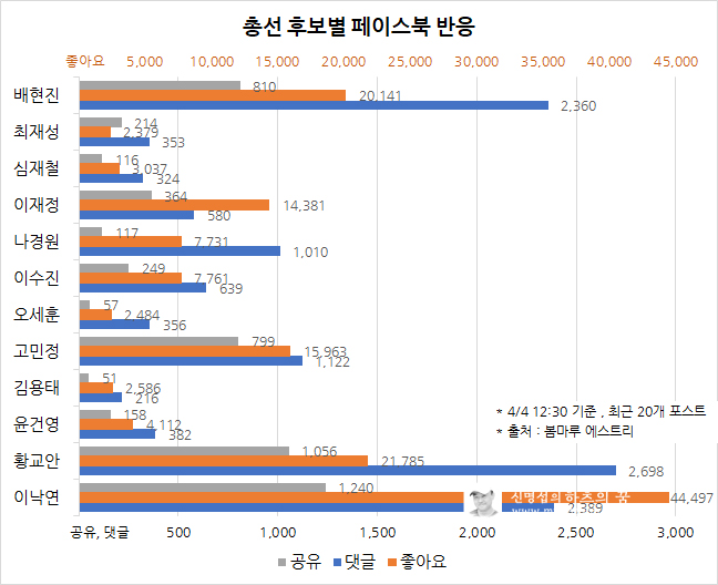 [2020년 총선] 격전지 후보 팬심, 이낙연/황교안/고민정 등 페이스북(빅데이터 분석)