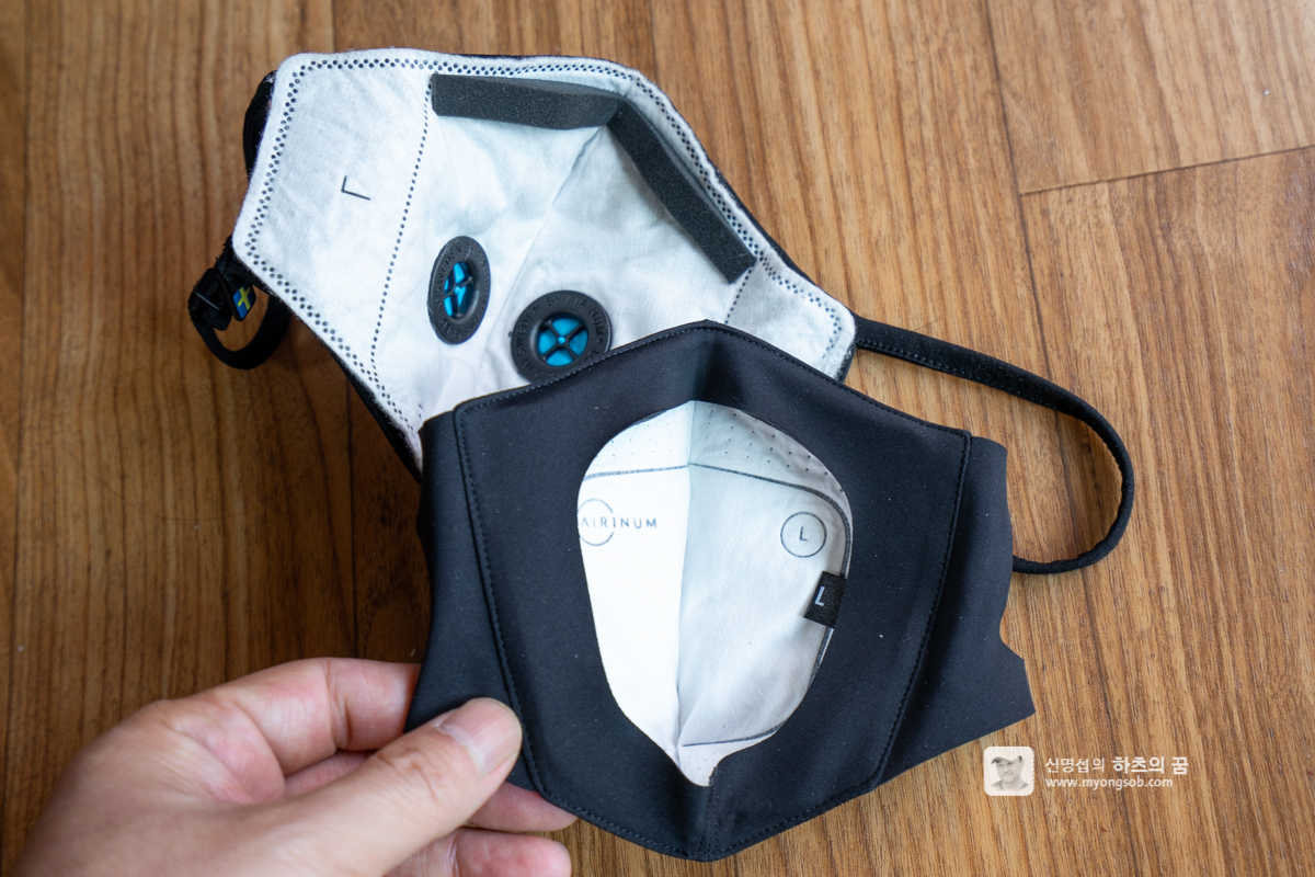 외부 공기 차단을 위해서는 필터를 끼워서 사용하는 것이 맞지만 그냥 마스크 만 써도 상관은 없다. 마스크는 스웨덴 특허의 항균 기술의 폴리진 가공 원단을 사용하여 위생적이다.