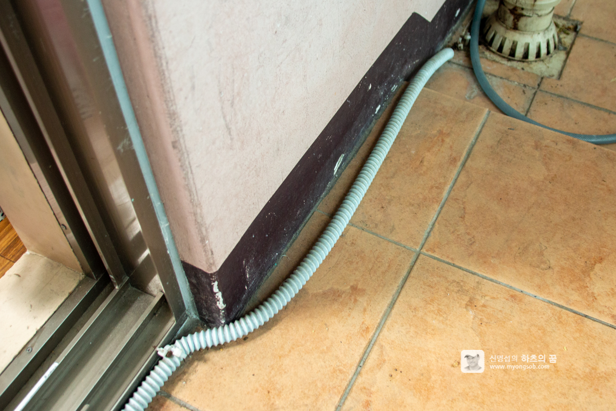 끝으로 에어컨에서 물이 빠지는 배수호스를 점검한다. 한동안 사용하지 않은 상태여서 혹시라도 케이블이 깨진 부분이 있으면 문방구 등에서 재료를 구입해서 해당 부분을 보완해 준다. 혹시 호스가 전체적으로 문제가 있다면 교체해 주는 것이 좋겠다.