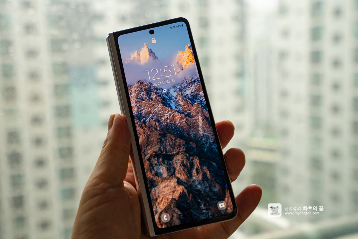 해당 스마트폰을 직접 사용한 지 2일이 지났지만 손에 쥐는 것은 아직 쉽지 않다. 접어서 사용하는 것은 문제가 없지만 펼쳐서 사용하는 경우 제대로 쥐지를 못하고 있다. 좀 더 사용해야 적응이 될 듯 하다.