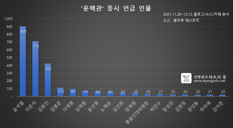 빅데이터 분석으로 본 '윤석열 핵심 관계자' 인물과 이슈