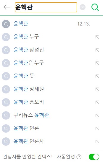 네이버 검색의 '윤핵관' 연관 키워드를 보면 위에 언급된 인물 중 장성민, 장제원 2명의 인물이 보이기도 한다.