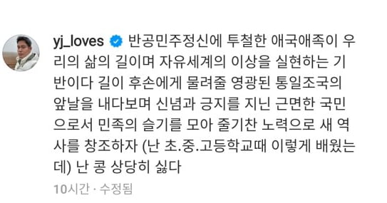 정용진, SNS에 “나는 공산당이 싫다” 연이어 올려