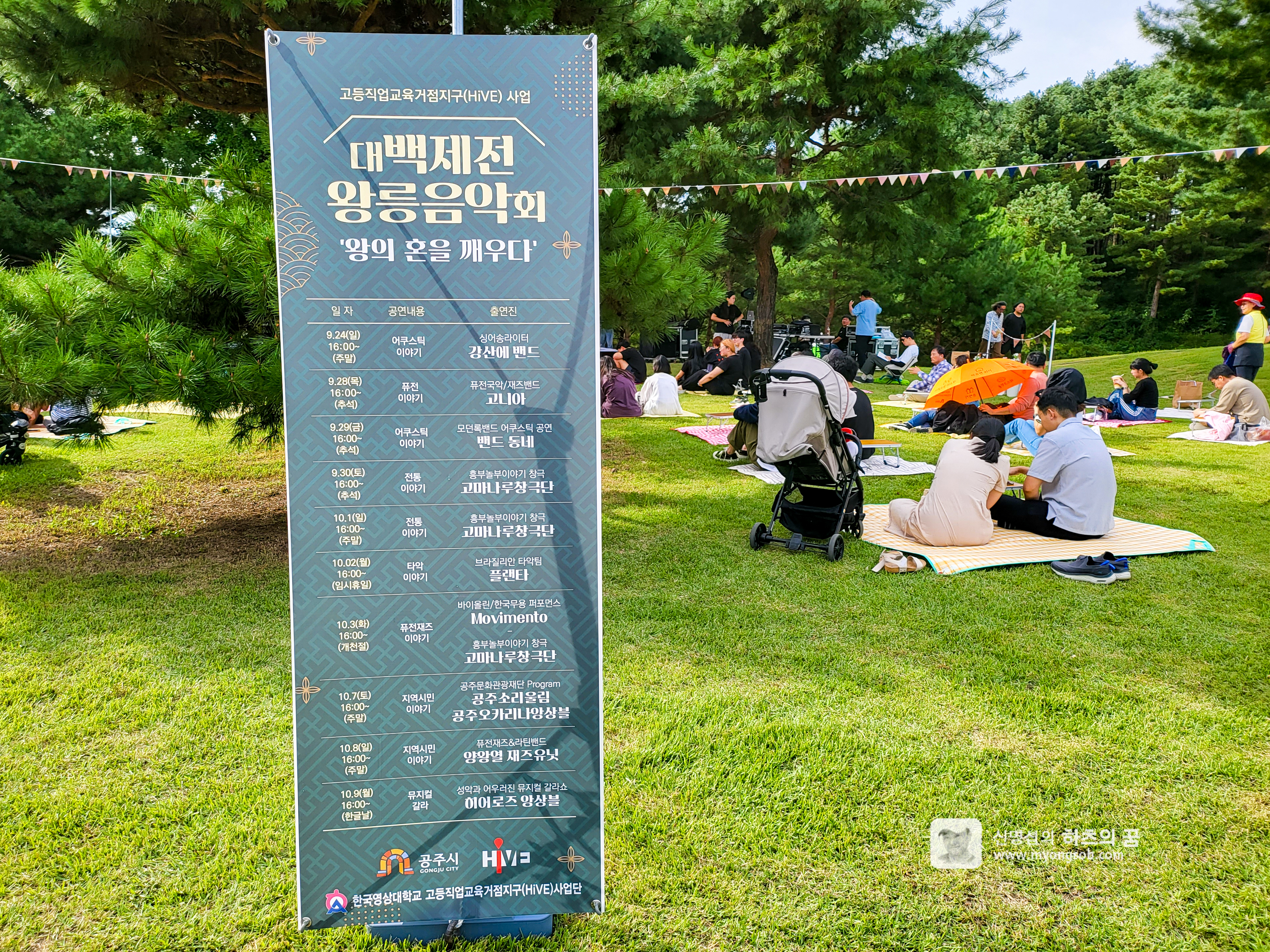 우리가 방문한 시간에 우연히도 대백제전 왕릉음악제 첫날 첫 시간이었다. 첫번째 공연은 강산애 밴드였다. 잠시 기다리니 강산애 씨을 비롯해서 3인의 밴드가 공연을 시작했다. 오랫만에 실제로 보게 된 강산애 씨는 유쾌하게 공연을 진행하셨다.