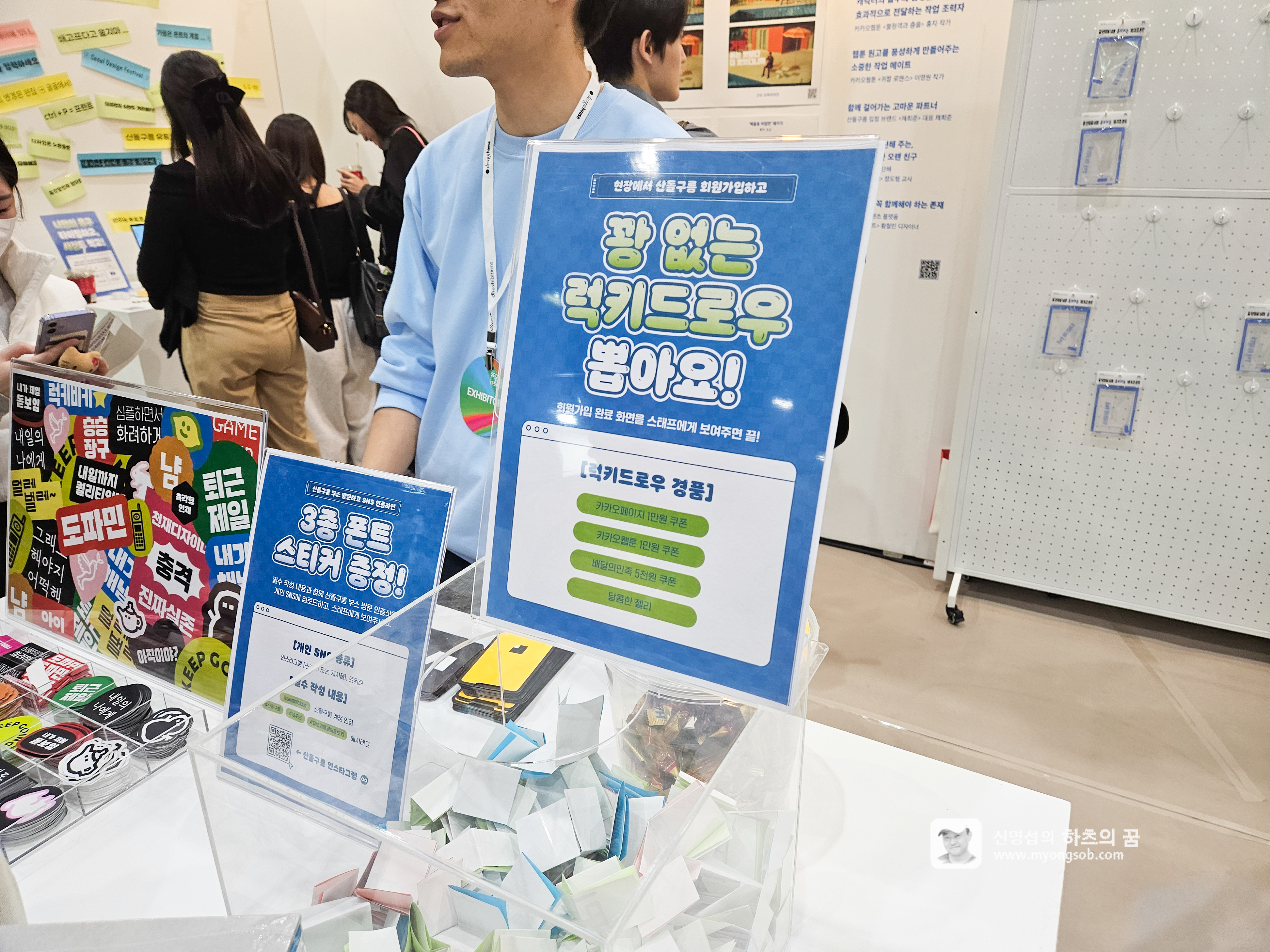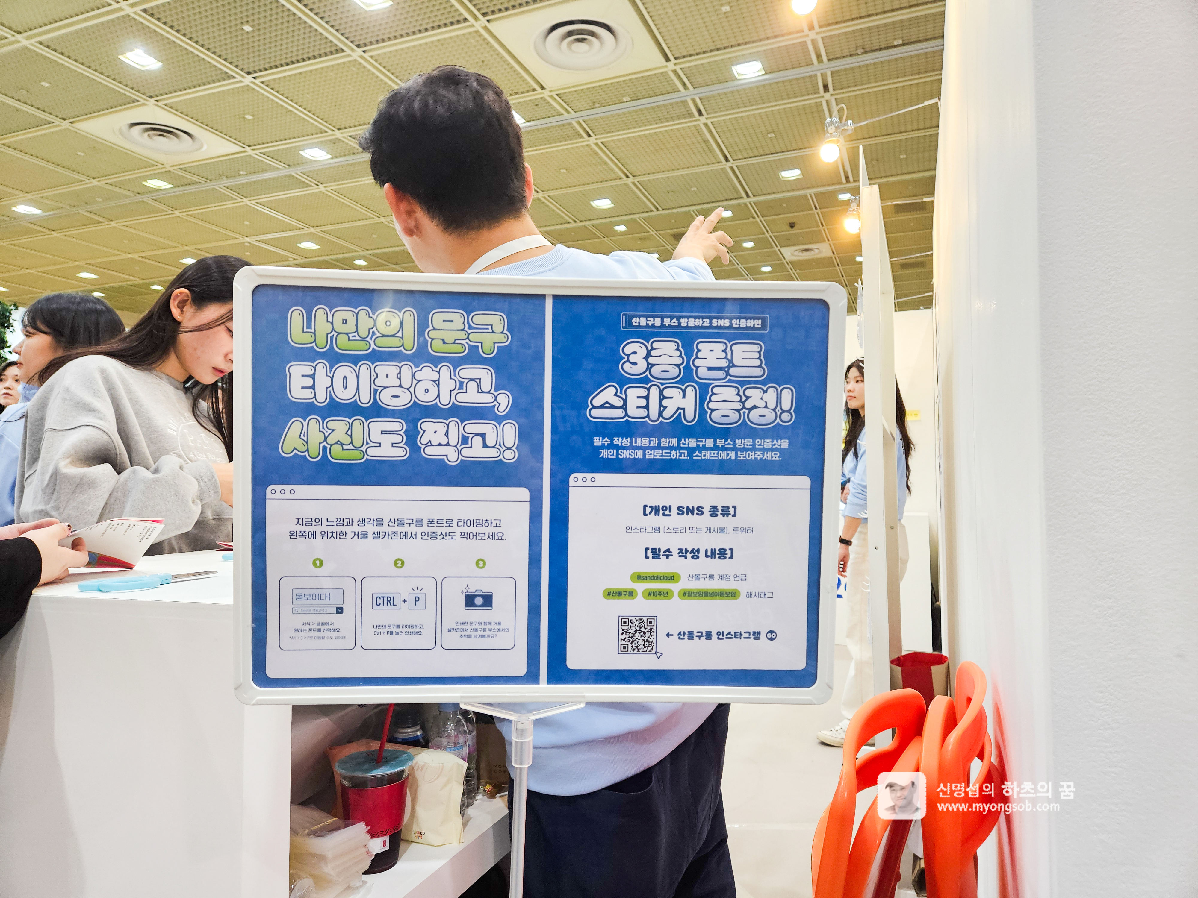 산돌구름 부스 방문을 본인의 SNS에 인증하고 필수 해시태그를 입력하고 발행한 후, 스텝에게 보여주면 귀여운 폰트 스티커 3종울 제공하는 이벤트도 흥미로웠다.