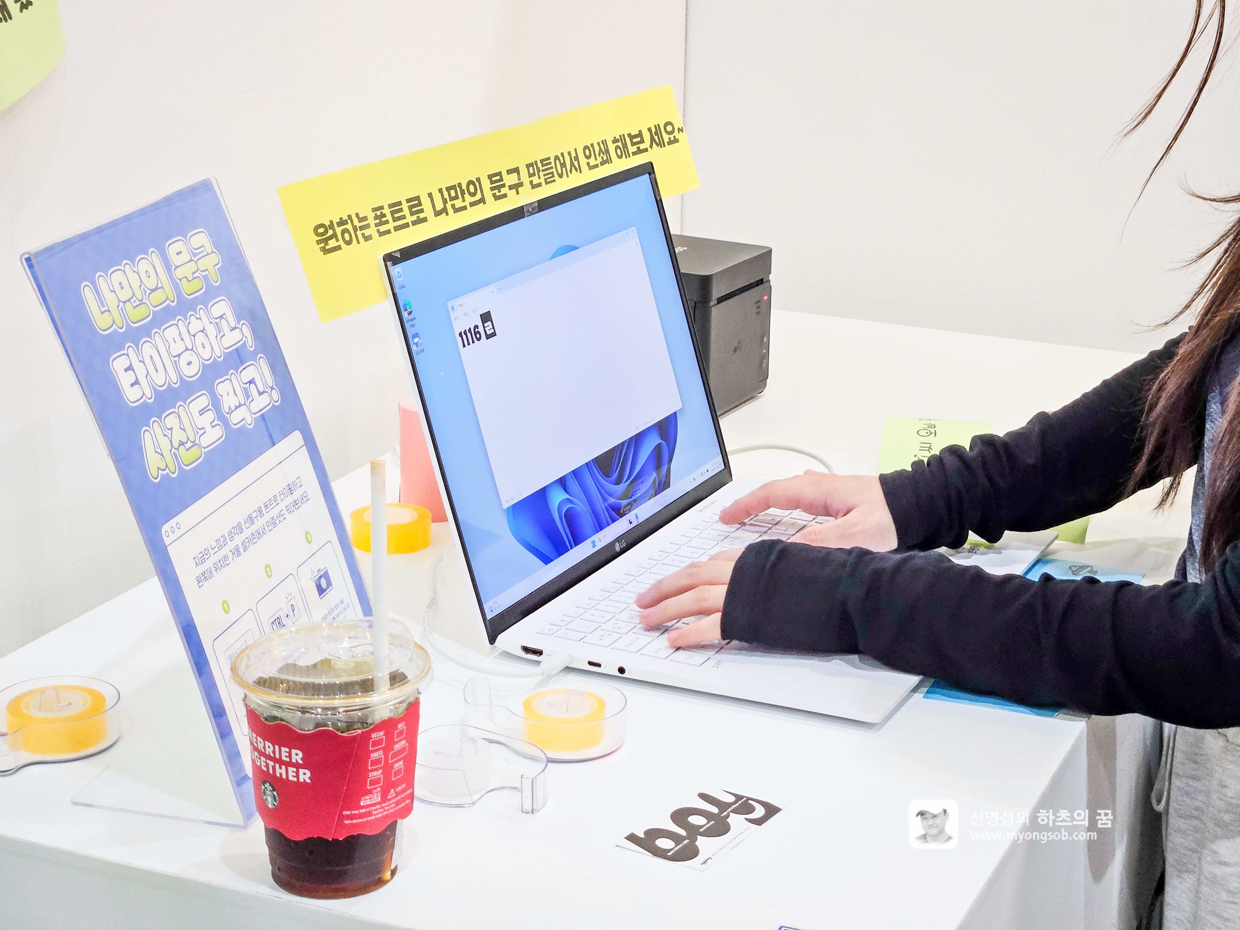 또다른 공간에서는 원하는 문구를 입력하여 인쇄한 후 셀카를 찍을 수 있는 이벤트가 진행 중이다.